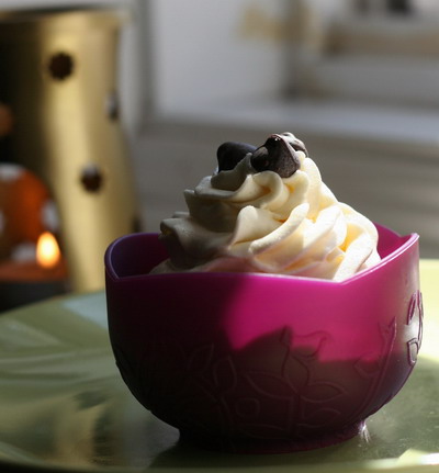 3. Once the icing is light and fluffy (after a couple of minutes of whipping), fill piping bag and decorate cooled cupcakes.