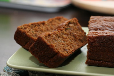 In this recipe, I’ve substituted the all-purpose flour with whole wheat, the butter with canola oil, and the eggs with baking soda and white vinegar. The substitutions might have you feeling skeptical, and to be honest, I had my doubts too. But in the end, the zucchini bread turned out moist, lighter than I had expected, and fragrant with warm spices. I only wish I’d had some walnuts or pecans on hand to toss into the batter for a bit of crunch.