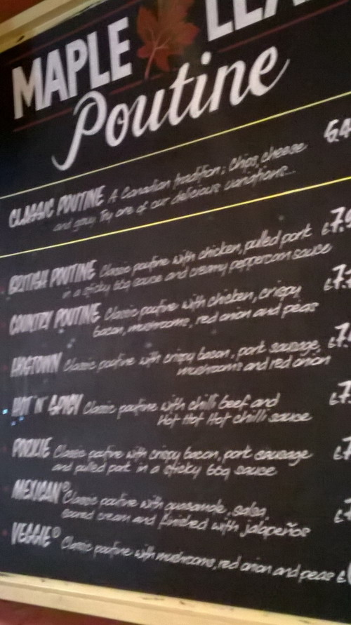 Borough market 1The ShardOne of the coolest things I got to do this trip was meet up with my blogger friend Elaine from foodbod.wordpress.com at Borough Market. Please check out her site for inspiring recipes and stunning photography. We chatted, strolled and sampled some tasty nibbles as though we had many times before. I picked up many gifts from the market and had a delicious dosa lunch, hot and fresh off the griddle. I’d heard lots about Borough Market and agree that it’s something special. Can’t wait to visit again and I wonder what it must look like at Christmastime. Thanks again, Elaine, for coming to meet me, it was a wonderful afternoon! Covent garden stationCovent garden 1Covent garden 2PastiesOne of my favourite places to visit in London has always been Covent Garden. One of my London relatives asked me why and I couldn’t quite explain it. Some see the area as quite commercial and dare I say “touristy.” But for me, it’s always been a fun place to wander, where you can watch zany performers, listen to musicians, meet interesting artisans…and eat Cornish pasties. Although I was shocked to discover that my fave pastie place had moved. I’ll have to track it down next time, ha. Th maple leafthe maple leaf 3the maple leaf 2PoutineIt seems to be that one of the rites of passage for Canadians visiting London is to drop in for a pint at the Canadian pub, appropriately named The Maple Leaf. I’ve had London relatives for ten years now, but this was my first time visiting! Admittedly, the place was a bit cheesy pie, with Canadian kitsch decorating the walls – e.g. Toronto Maple Leaf jerseys, moose crossing signs, and the like – but I have to say, I had a great time there. The place is a mix between a pub, sports bar and log cabin, and has an extensive poutine menu – the Quebecois delicacy of fries, cheese curds and gravy…don’t knock it, ha! – although the kitchen was closed while I was there, so I didn’t get to sample it this time. We had a London beer – Noble? It’s quite good – in the Canadian pub, which seemed quite appropriate for us. I can see The Maple Leaf being lots of fun during the NHL playoffs or on Canada Day. Before leaving, we defaced a bit of money in the name of patriotism. The  back wall of the bar is full of Canadian bills, loonies and toonies, signed by Canucks passing through. Now there’s an initialed toonie of ours up there too, to say “we were here.” All in all, it was a bit of fun and I look forward to bending an elbow there again before long.    Maple leafsNot sure which tube station this was taken at, but it’s always fun to see touches of Canada here and there. Much like these leaves in the wind, the trip flew by!