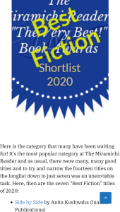 -SIDE BY SIDE has been shortlisted for the Best Fiction of 2020 by The Miramichi Reader! Delighted and honoured!